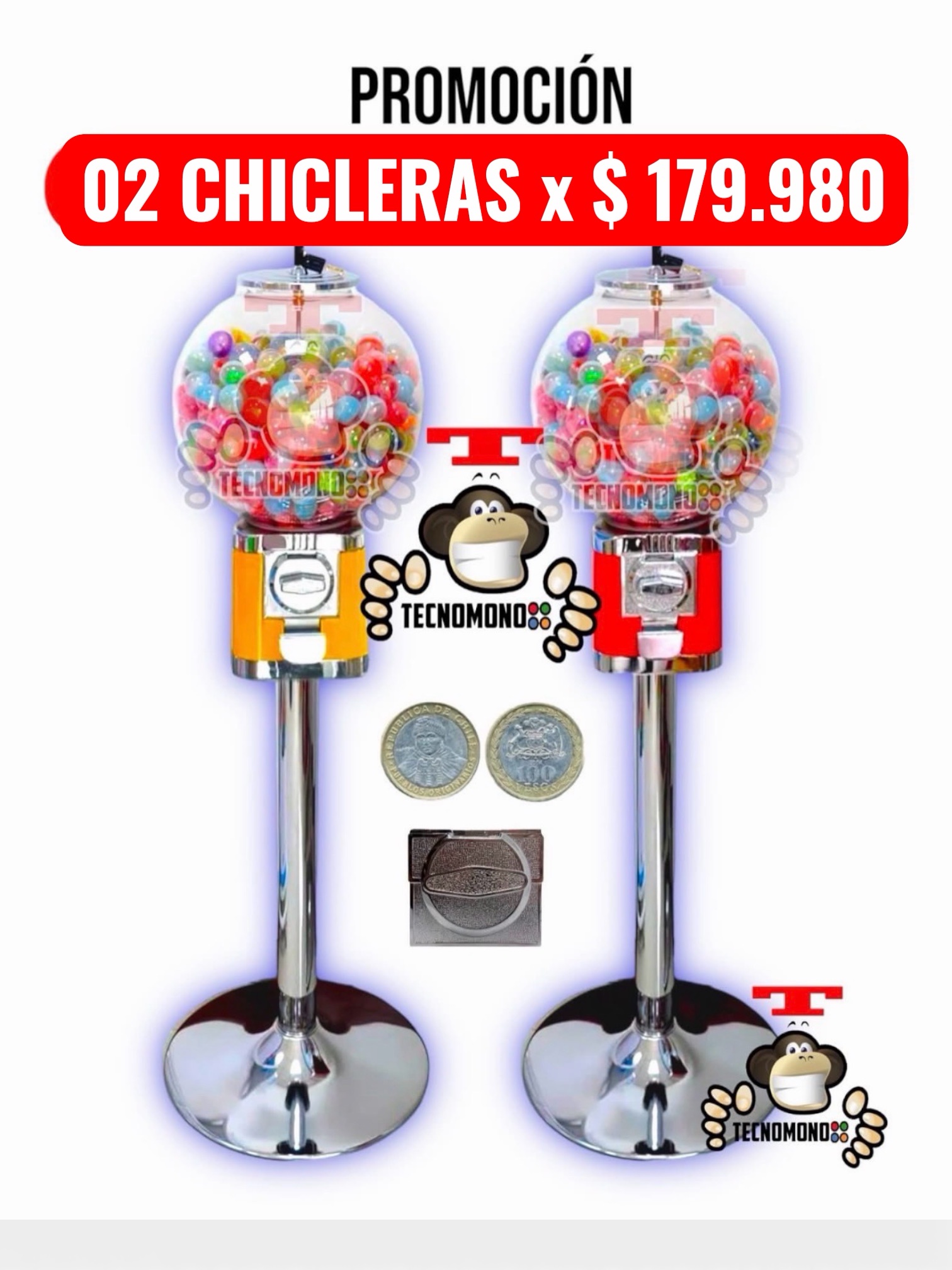 $111.970MÁQUINA CHICLERA MODELO ESFERA + 2 TARRO con 100 chicles de 25mm