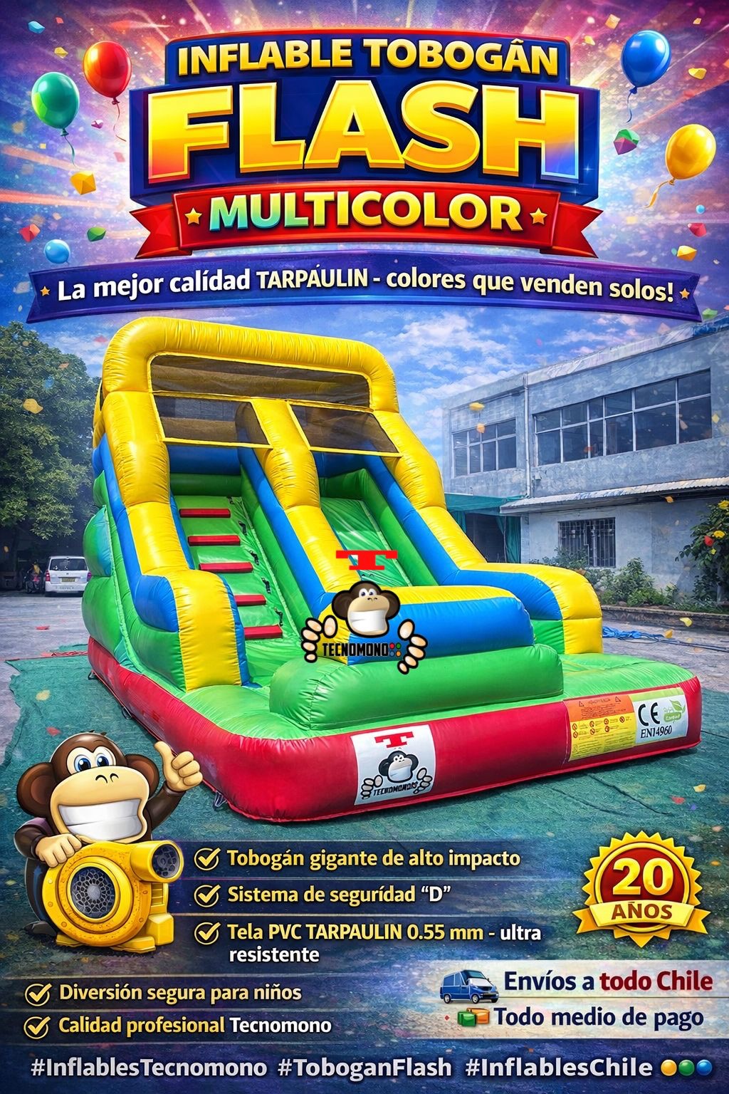 INFLABLE TOBOGAN FLASH MULTICOLOR + TURBINA INCLUIDA MEDIDAS 5*3.22*3.8m